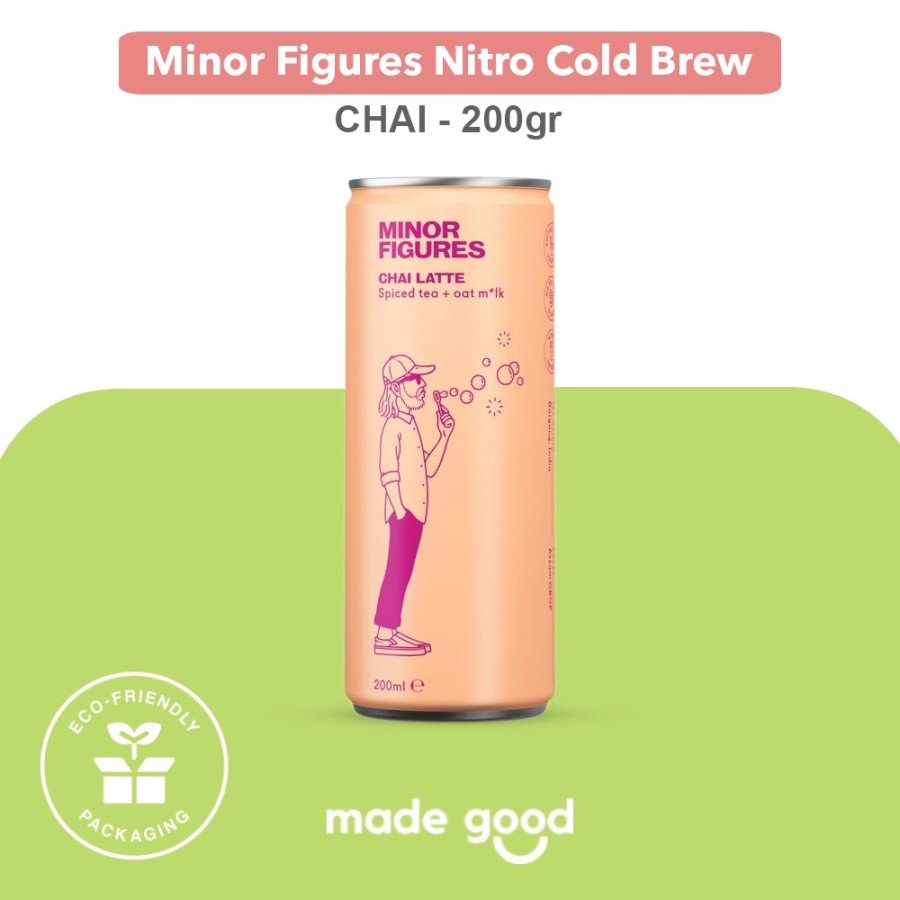 Minor Figures Nitro Bew Coffe Cans 200ml adalah special kombinasi kopi dengan Oat M*lk. No dairy, No added sugar, and for vegan.