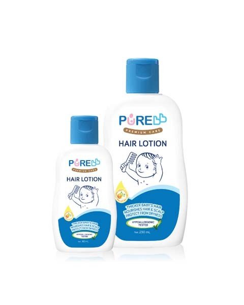 Purebb Hair lotion adalah Hair lotion dengan formula yang begitu lembut Untuk perawatan rambut dan kulit kepala bayi yang diperkaya dengan kandungan kemiri, seledri dan pro Vit B5 untuk membantu pertumbuhan rambut bayi lebih lebat, hitam, lembut dan sehat, melindungi kulit kepala bayi dari resiko kekeringan sekaligus menutrisi rambut bayi.